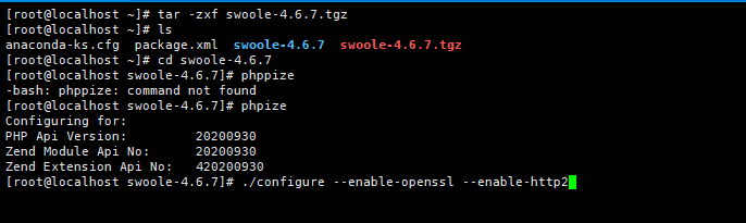 如果没有加入环境变量就需要使用绝对路径 /usr/local/php/bin/phpize ( 我的php是这个路径 )