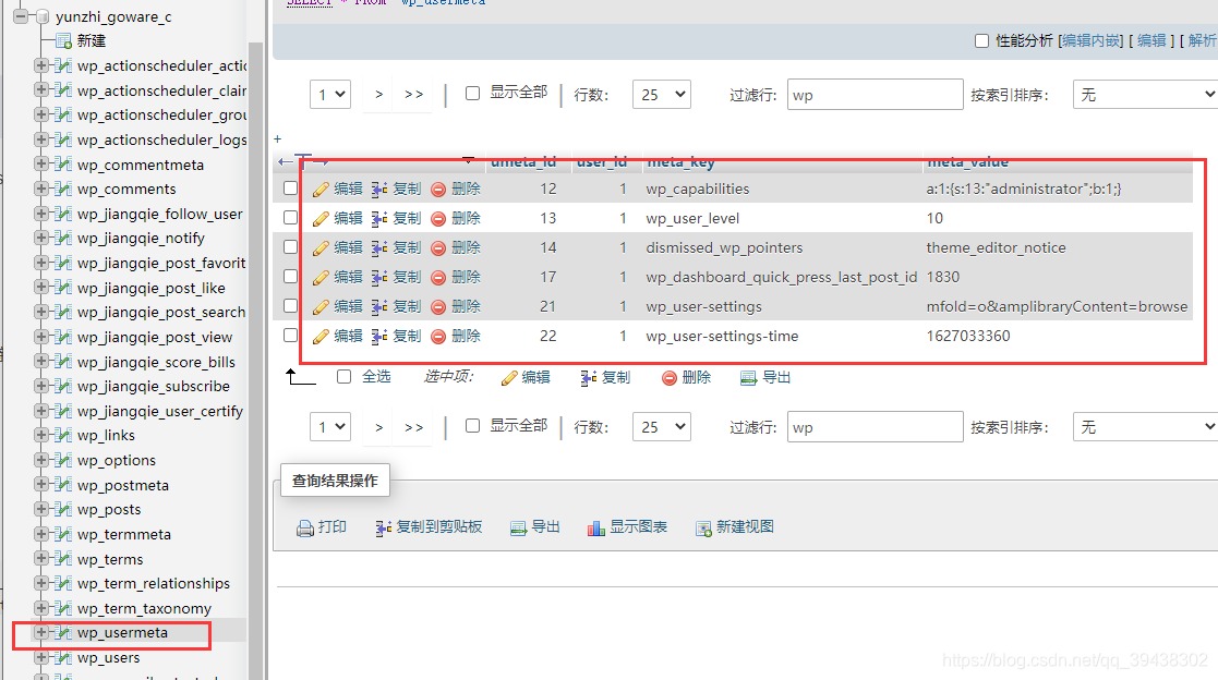 ? ? ? ?第一步是将wp_usermeta(wp_是数据库前缀,如果你当时没有改动的话默认就是wp)中的带有wp_开头的meta_key中的值前缀进行修改,如修改wp_user_level修改为yz_user_level?。同时在设置中wp_usermeta的前缀也需要修改和刚刚值前缀相同。