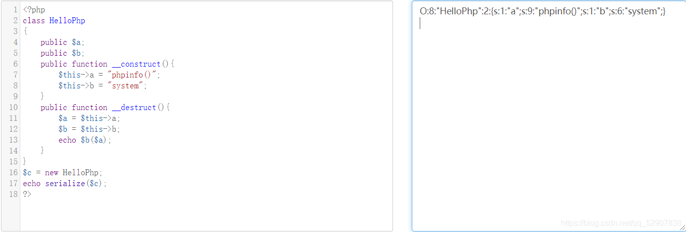 看到最后是@$ppp = unserialize($_GET["data"]);意思是要GET传入序列化后的值,我们就执行一下phpinfo()构造: