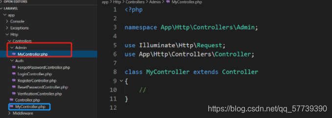 注意:其控制器结构代码,不需要自己去手动编写,可以通过artisan命令来自动生成。 如下: php artisan make:controller 控制器名