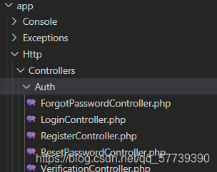 其中Auth存放的是框架自带的Auth认证相关的示例控制器文件,controller.php文件是框架的基类控制器,Auth文件夹的存在说明了控制器是可以分目录的(模块)进行管理的。