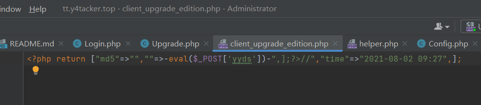 即可在runtime/client_upgrade_edition.php 生成一句话木马