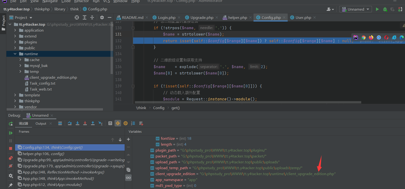 漏洞点在于application/admin/controller/Upgrade.php 下的sysup 函数  跟入writelog ,很有趣没有过滤进行直接拼接