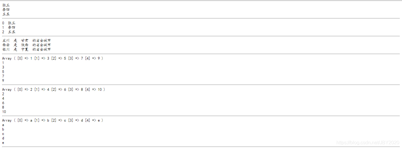 // 1、索引/数值数组 : 用for循环通过索引进行遍历,也可以用foreach遍历