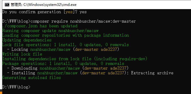 # 打开命令窗口执行命令下载,生成一个目录,三个文件,其中vendor目录下的monolog目录就是刚下载的类库