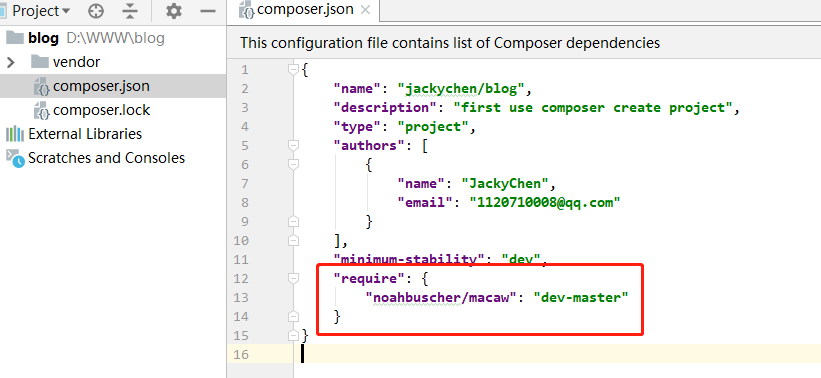 工具库(libraries),Composer 会帮你安装这些依赖的库文件