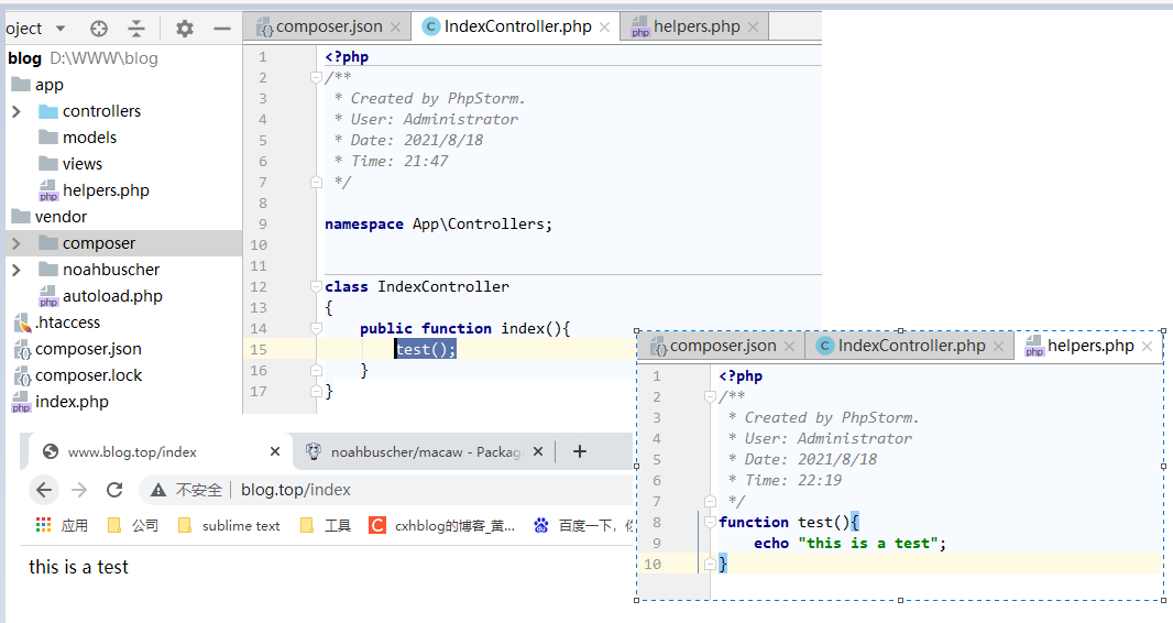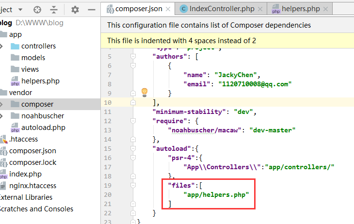 # composer.json加入自动加载代码,执行composer dump-autoload