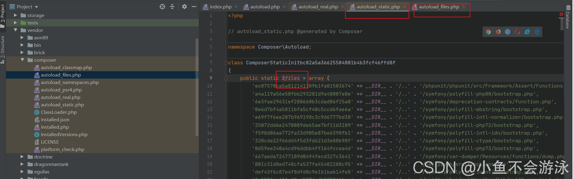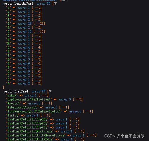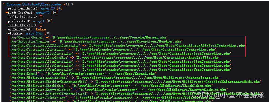 1)autoload_static.php:里面塞了一堆数组,数组里面就是那些composer依赖类了