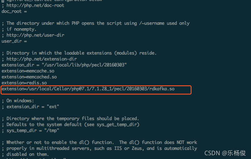 --->这个地址是需要配置到你的php.ini文件中的 ? - cd?/usr/local/Cellar/php@7.1/7.1.28_1/pecl/20160303/? ?会有个扩展文件:rdkafka.so