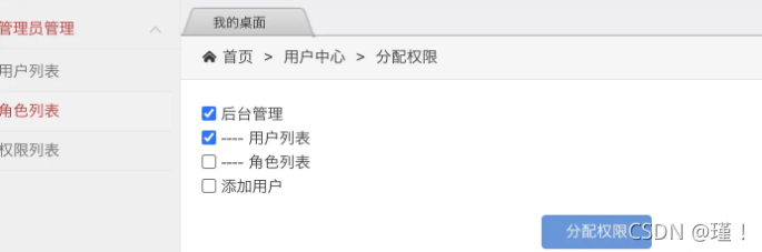 <nav class="breadcrumb"><i class="Hui-iconfont"></i> 首页 <span class="c-gray en">></span> 用户中心 <span class="c-gray en">></span> 分配权限 <a class="btn btn-success radius r" style="line-height:1.6em;margin-top:3px" href="javascript:location.replace(location.href);" title="刷新"><i class="Hui-iconfont"></i></a></nav>