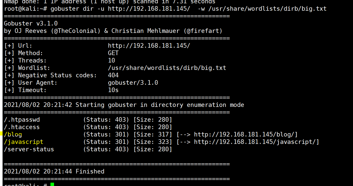 靶机ip:192.168.181.145 kali ip: 192.168.181.129 首先进行ip扫描