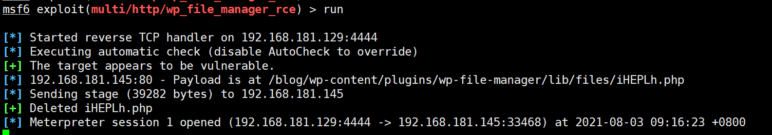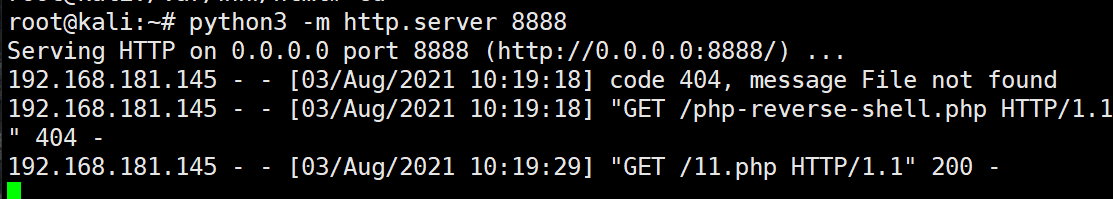 ?在kali端进行监听 ? ?稍等片刻后可以获得root权限