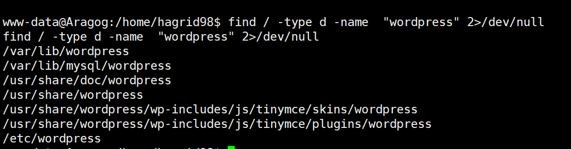 这是翻译后的结果:1: RidDlE's DiAry dEstroYed By haRry in chaMbEr of SeCrets,翻译为 1:里德尔的日记在《密室》中被哈利毁掉 于是我们查找所有带有wordpress的目录名