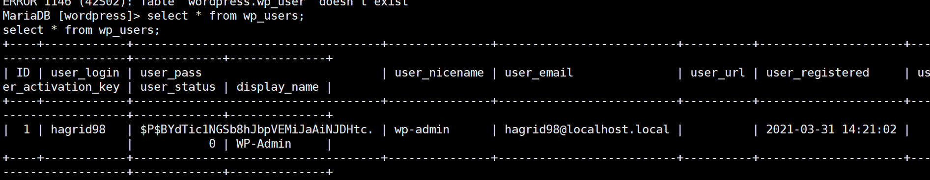 在wordpress找到了密码$P$BYdTic1NGSb8hJbpVEMiJaAiNJDHtc. select * from wp_users