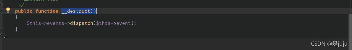 $this->events和$this->event可控,令$this->events为调用dispatch()方法的某个类