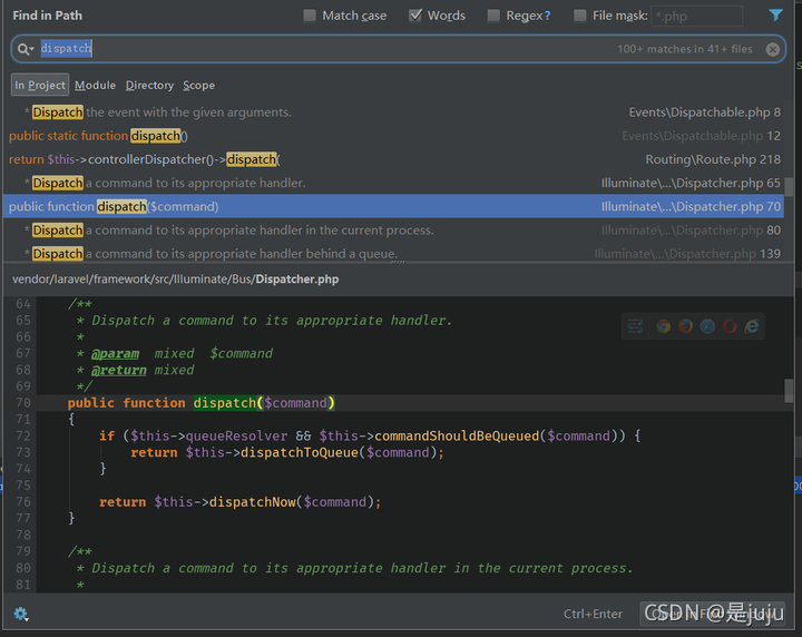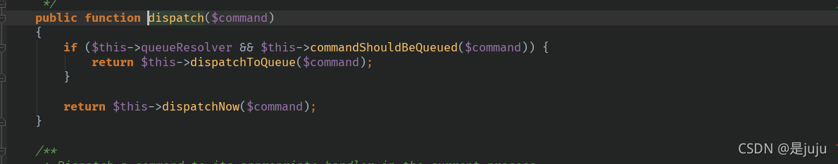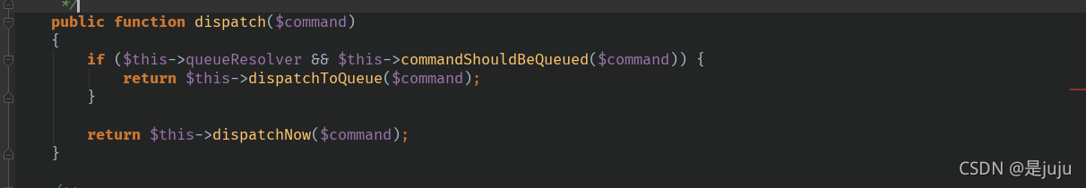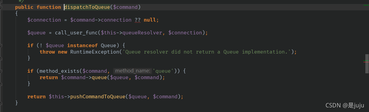 ?跟进dispatchToQueue()方法发现call_user_func()的调用: