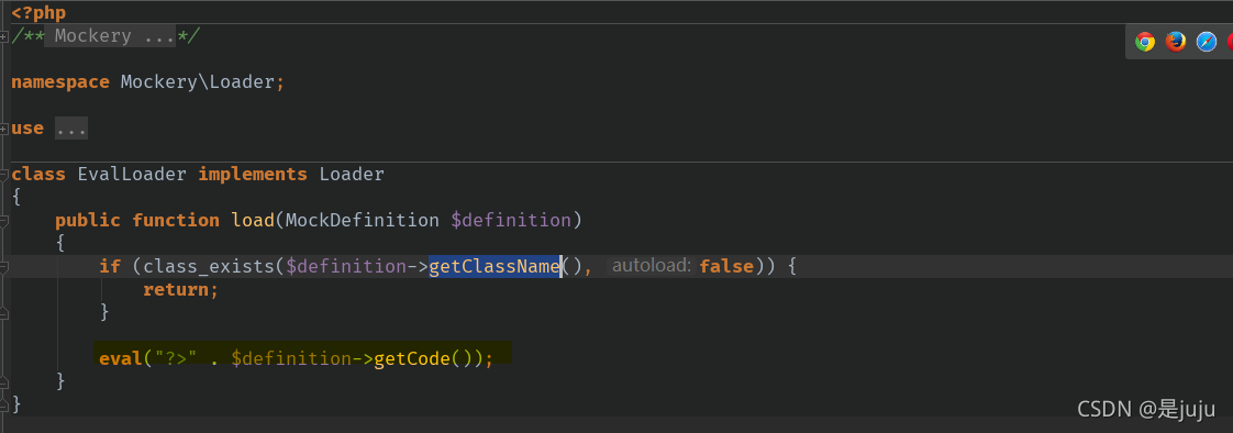 定位到laravel\vendor\mockery\mockery\library\Mockery\Loader\EvalLoader.php中