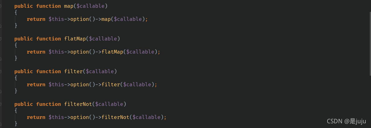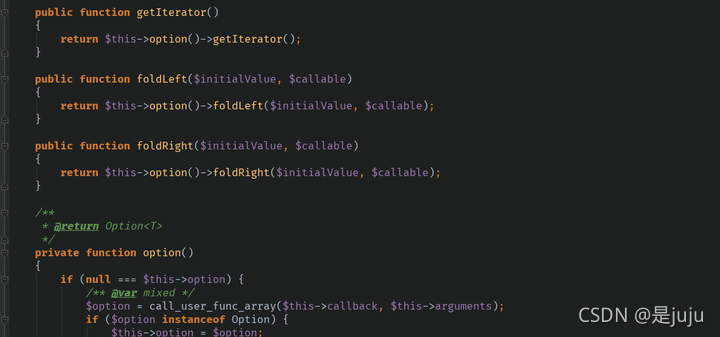 定位到laravel\vendor\phpoption\phpoption\src\PhpOption\LazyOption.php中: