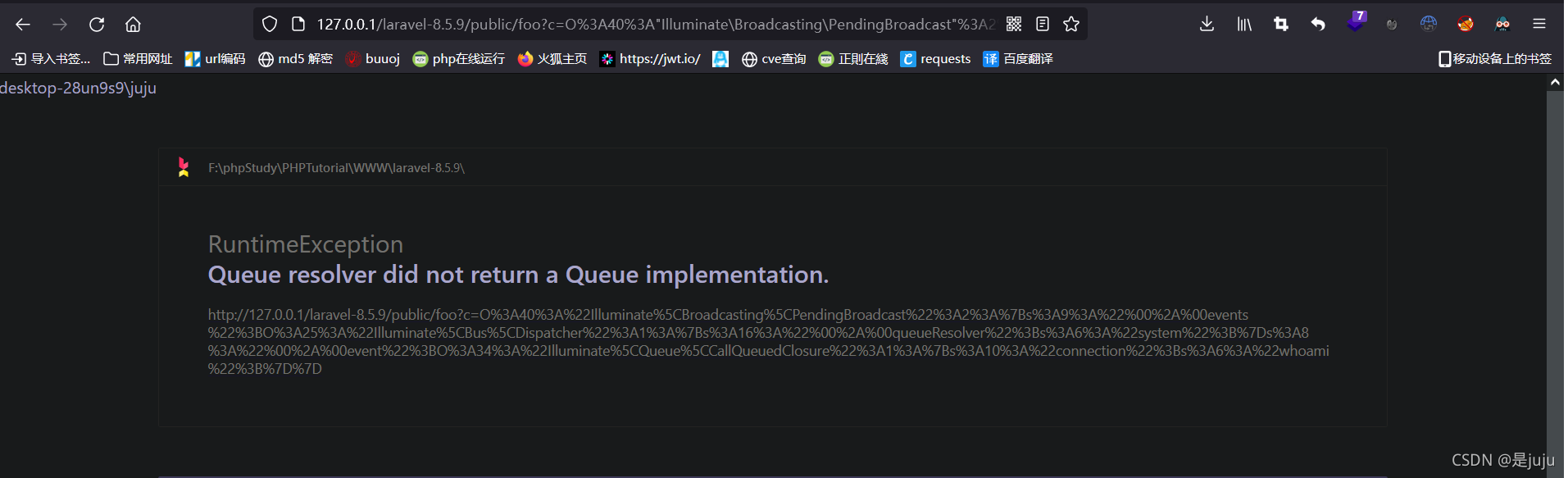 //$b = new Illuminate\Queue\CallQueuedClosure('whoami');