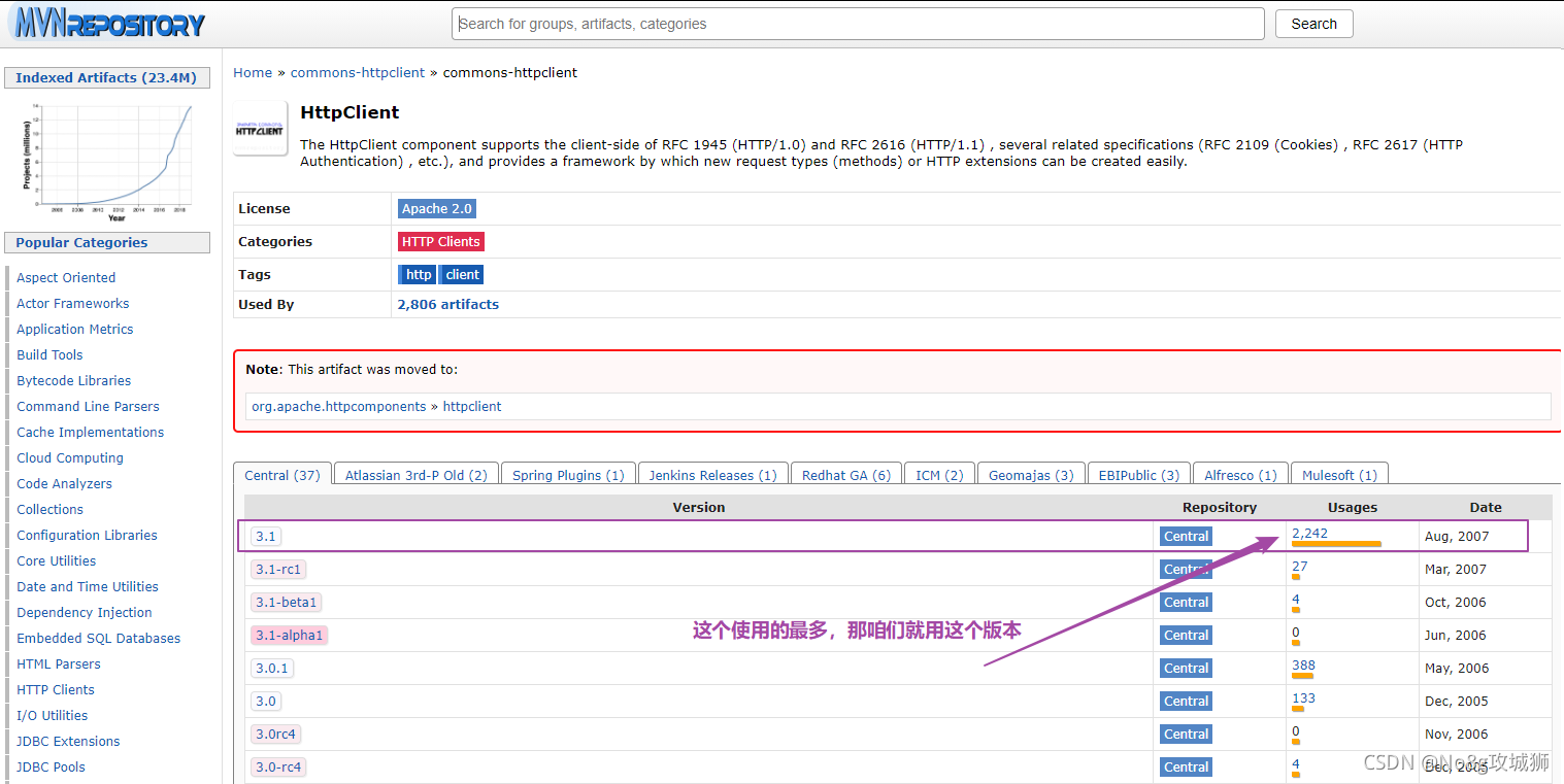 知道问题了,那就去找这个包吧,打开 https://mvnrepository.com/ 中央仓库的网站,去这里搜索 HttpClient 相关的包。