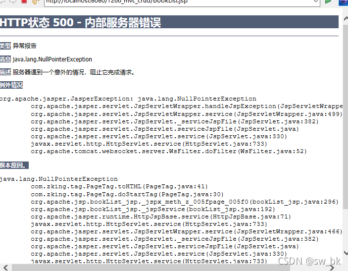 运行完页面会出现报错? :http://localhost:8080/T266_mvc_crud/bookList.jsp