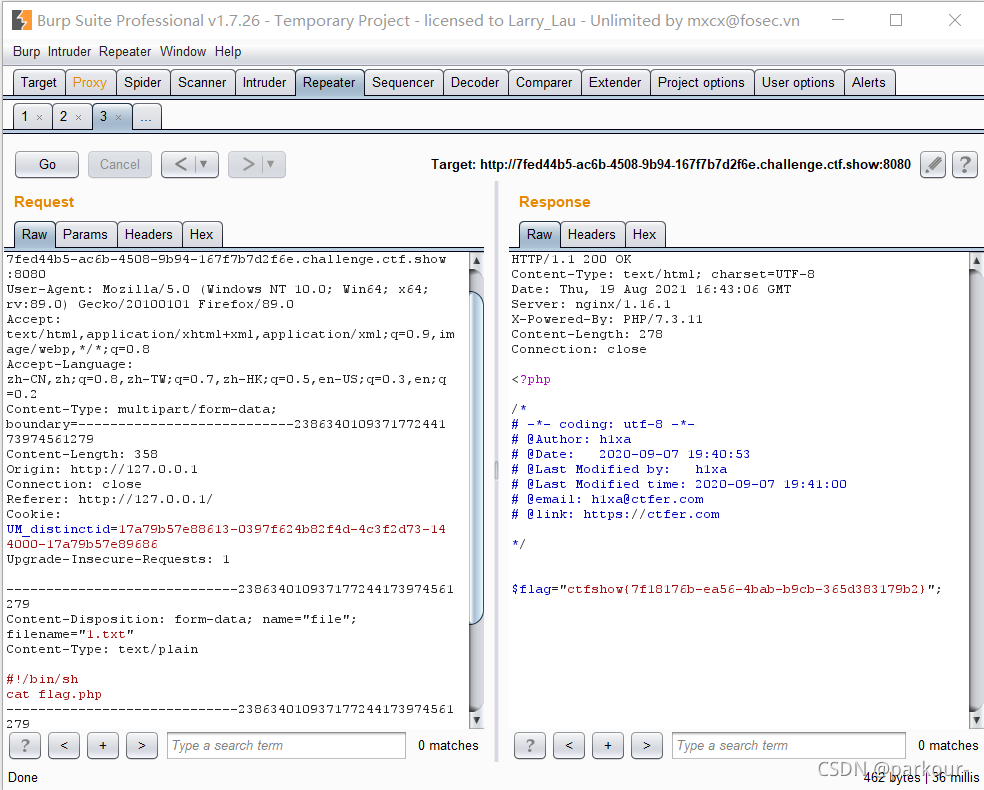 c包含一个get传入的参数1,在原题的源码里禁用的函数只对c禁用,1是随便用的,然后用1来读取flag.php