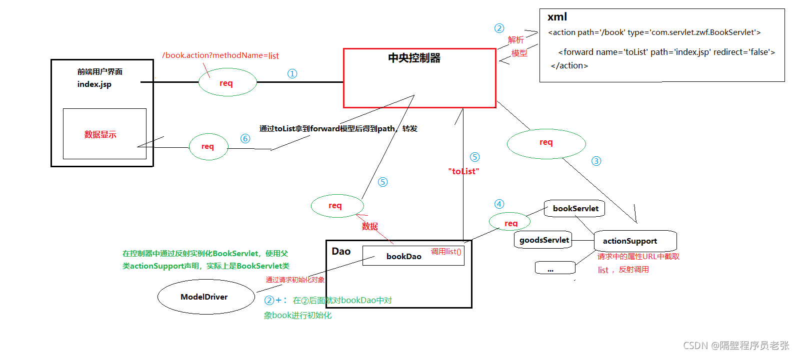 操作。如果BookServlet执行的是list(),返回“list”,然后通过该字符串得到对应的forward模