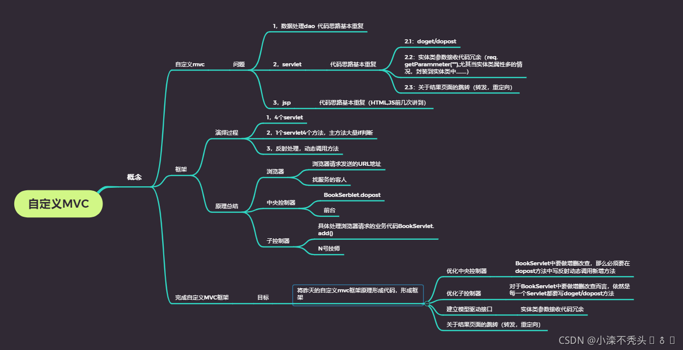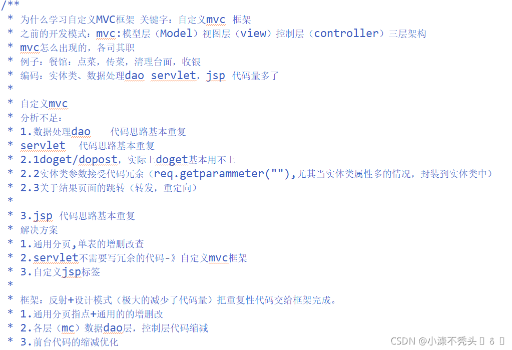 * 2.servlet不需要写冗余的代码-》自定义mvc框架