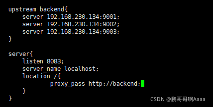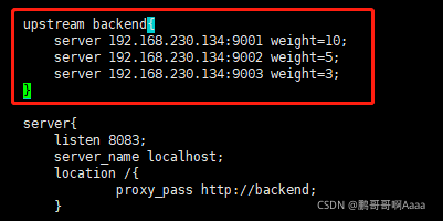upstream:该指令是用来定义一组服务器,它们可以是监听不同端口的服务器,并且也可以是同时监听TCP和Unix socket的服务器。服务器可以指定不同的权重,默认为1