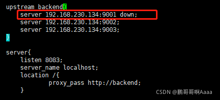 先在192.168.230.133中定义一个backend组,然后反向代理到134: