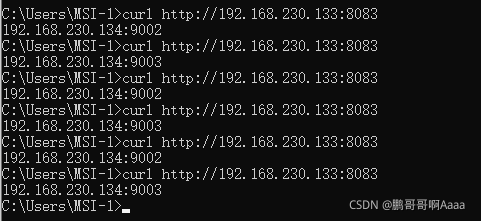 访问192.168.230.133:8083会看到轮询134的9001,9002,9003