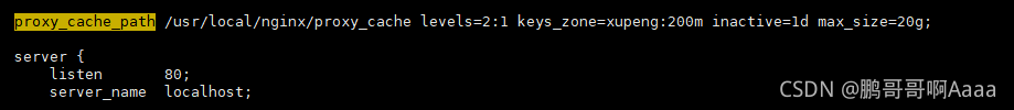 proxy_cache_path /usr/local/nginx/proxy_cache levels=2:1 keys_zone=xupeng:200m inactive=1d max_size=20g;