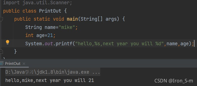 d | 十进制整数 | 159 | x | 十六进制整数 | 9f | o | 八进制整数 | 237 | f | 定点浮点数 | 15.9 | e | 指数浮点数 | 1.59e+01 | g | 通用浮点数 | | a | 十六进制浮点数 | 0x1.fccdp3 | s | 字符串 | Hello | c | 字符 | H | b | 布尔 | true | h | 散列码 | 42628b2 | tx或Tx | 日期时间 | 已经过时,应该用Java.Time类 | % | 百分号 | % | n | 与平台有关的行分隔符 | |