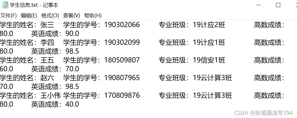 File file = new File("d:\\学生信息.txt"); //信息存放位置