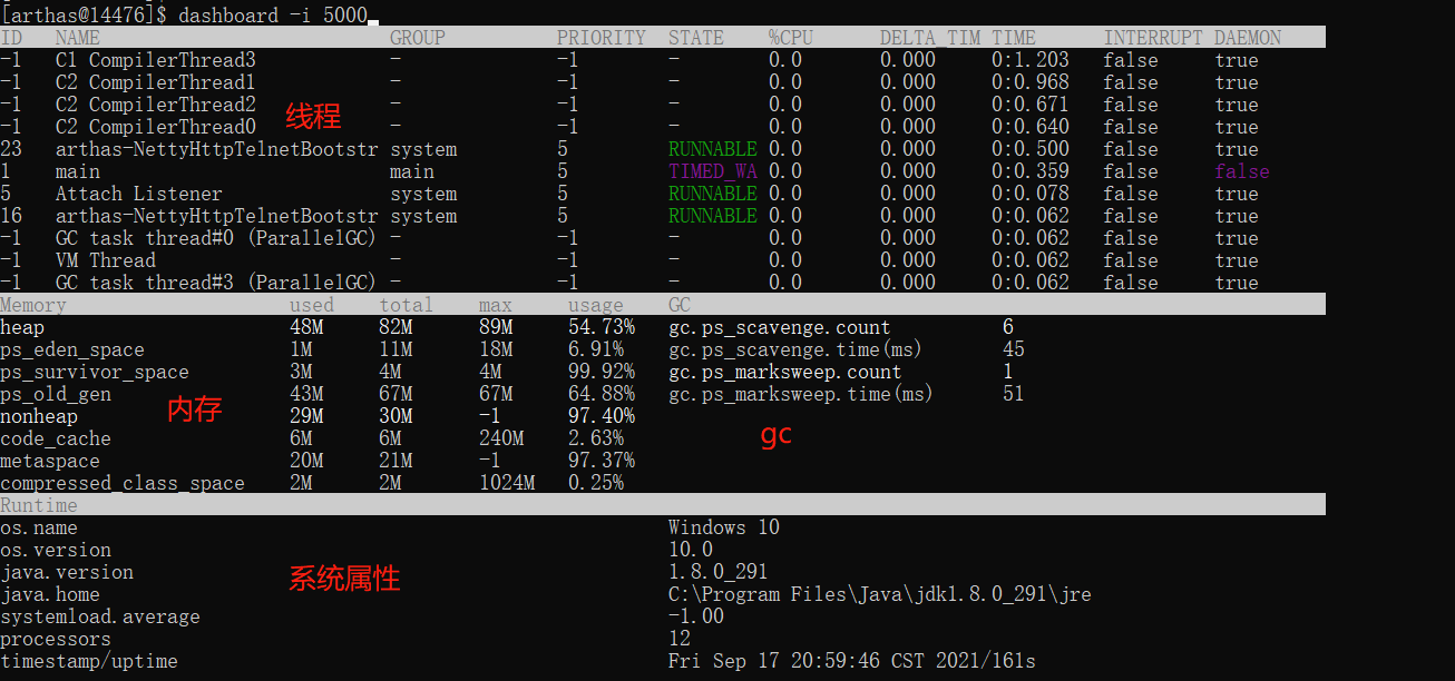 24 arthas-command-execute system 5 RUNNABLE 0.0 0.000 0:0.062 false true