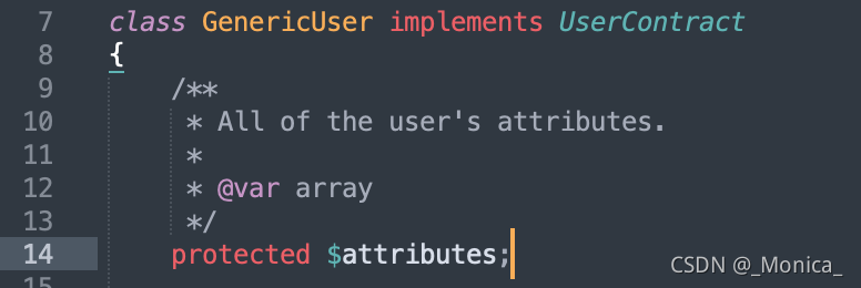 $this->test; //一个实例化的类 Illuminate\Auth\GenericUser,用于返回一个数组。