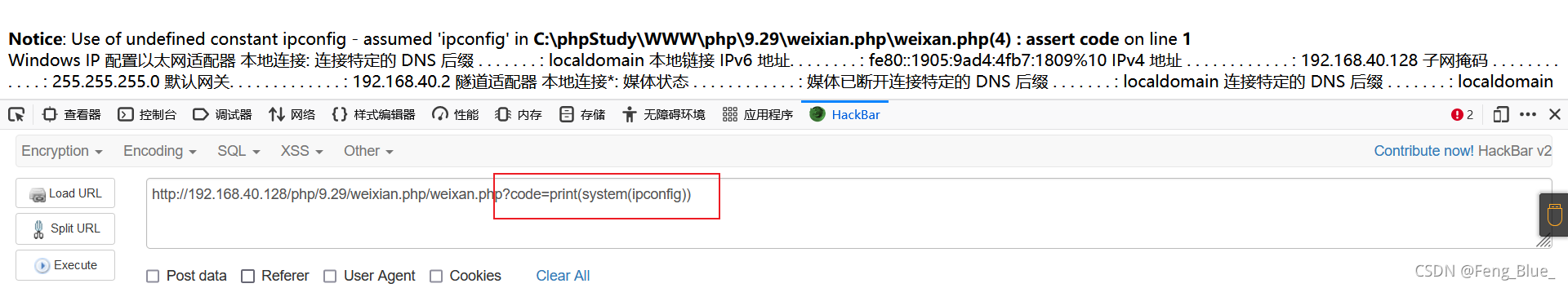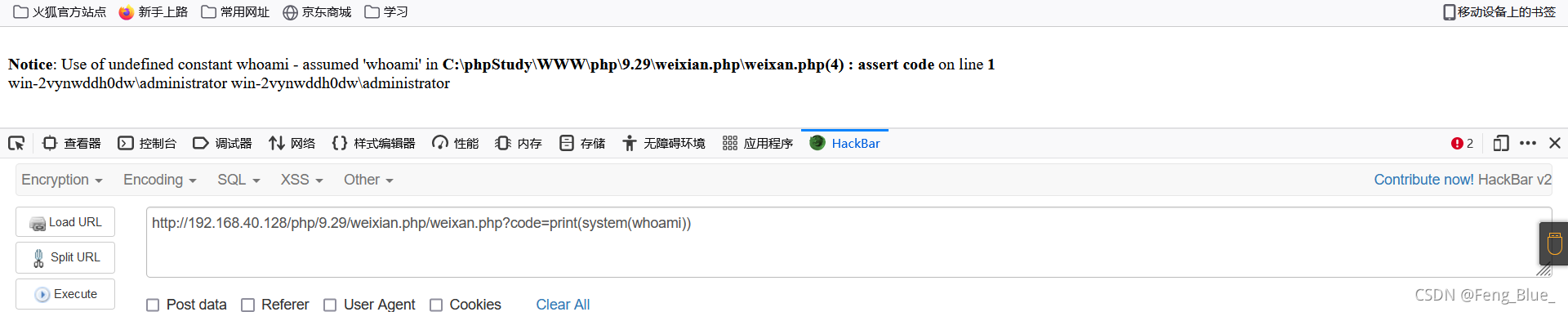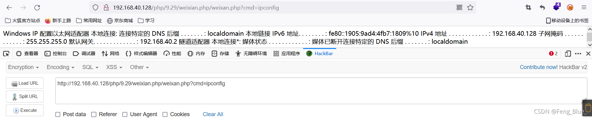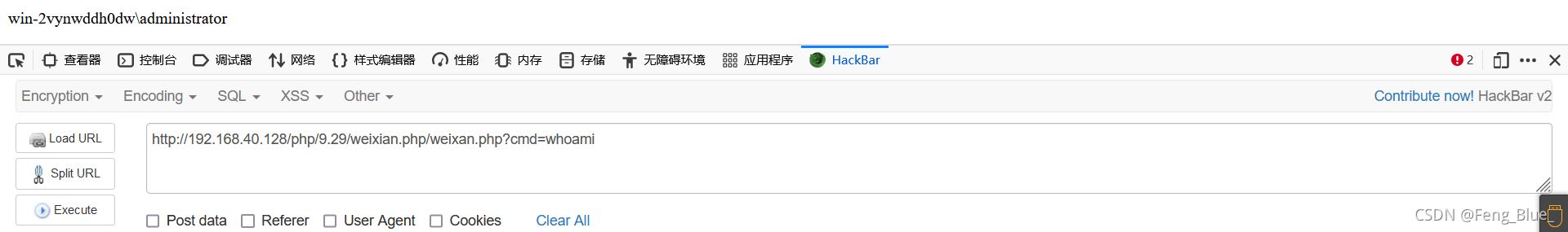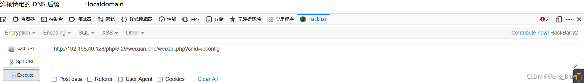 在网页中通过hackbar来操作,是可以执行系统命令,如下图