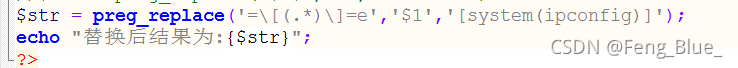 $str = preg_replace('=\[(.*)\]=e','$1','[system(ipconfig)]');