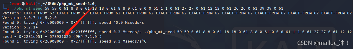 4.kali上下载工具php_mt_seed-4.0,使用该工具爆破php伪随机数的种子: