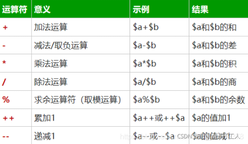 算数运算符: