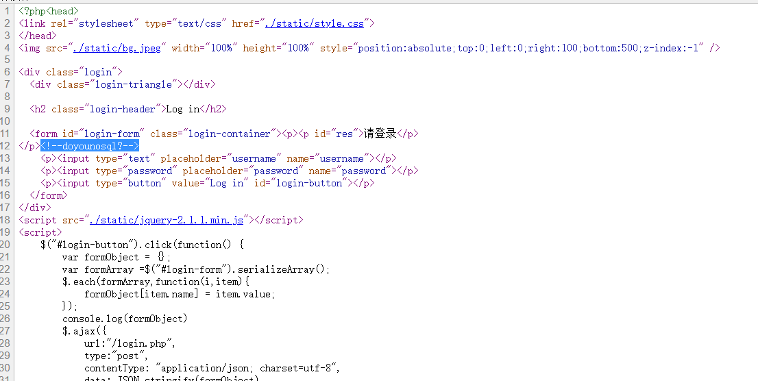 [GKCTF 2021]hackme  进入题目后,题目如上所示,查看页面源代码  提示nosql,这里推荐WHOAMI大佬的文章 这里源代码我们也看到了php头,那我们就看大佬文章里php中的nosql注入部分就行