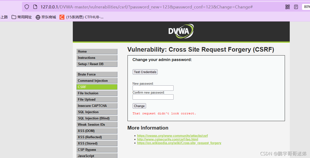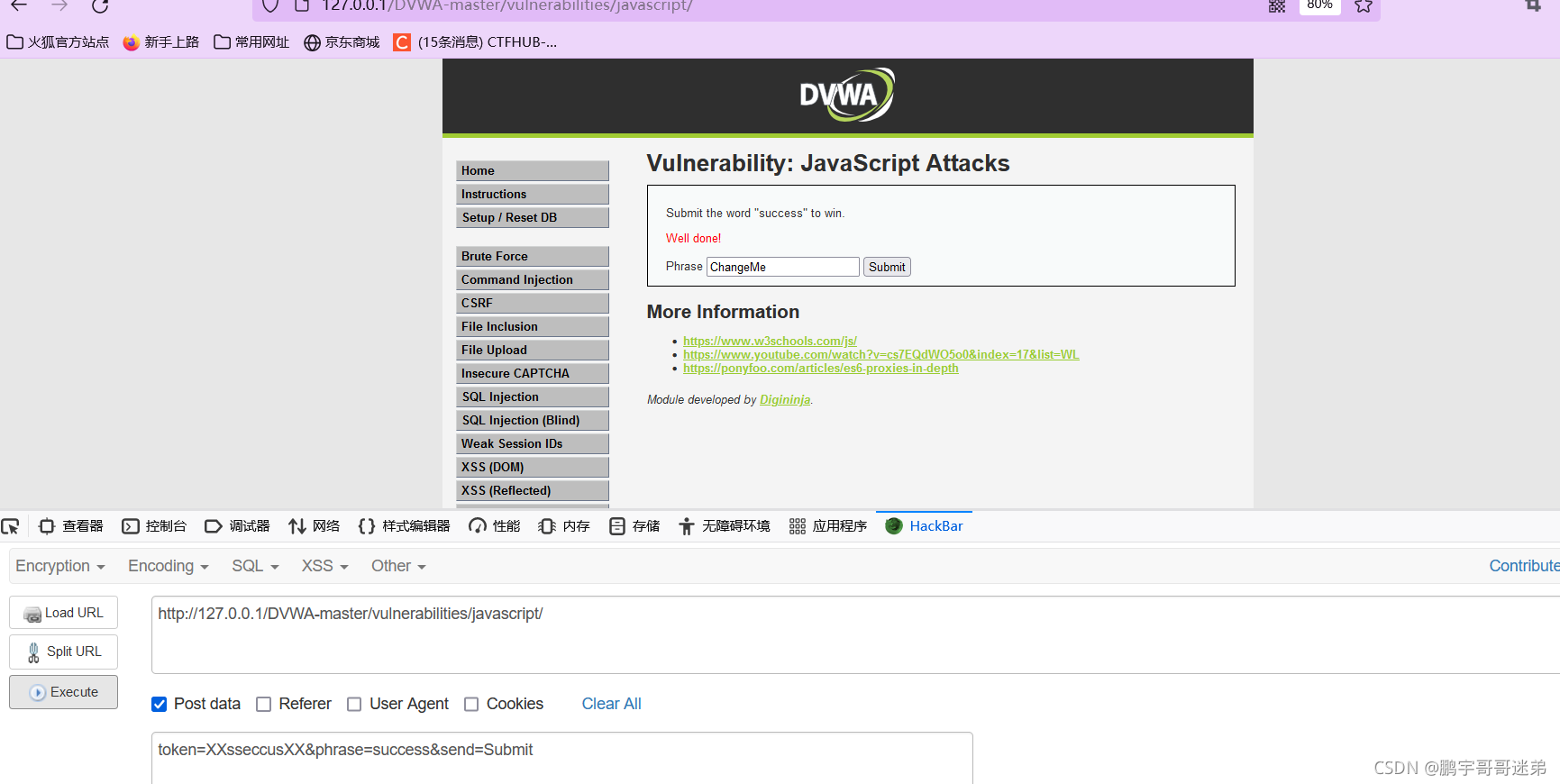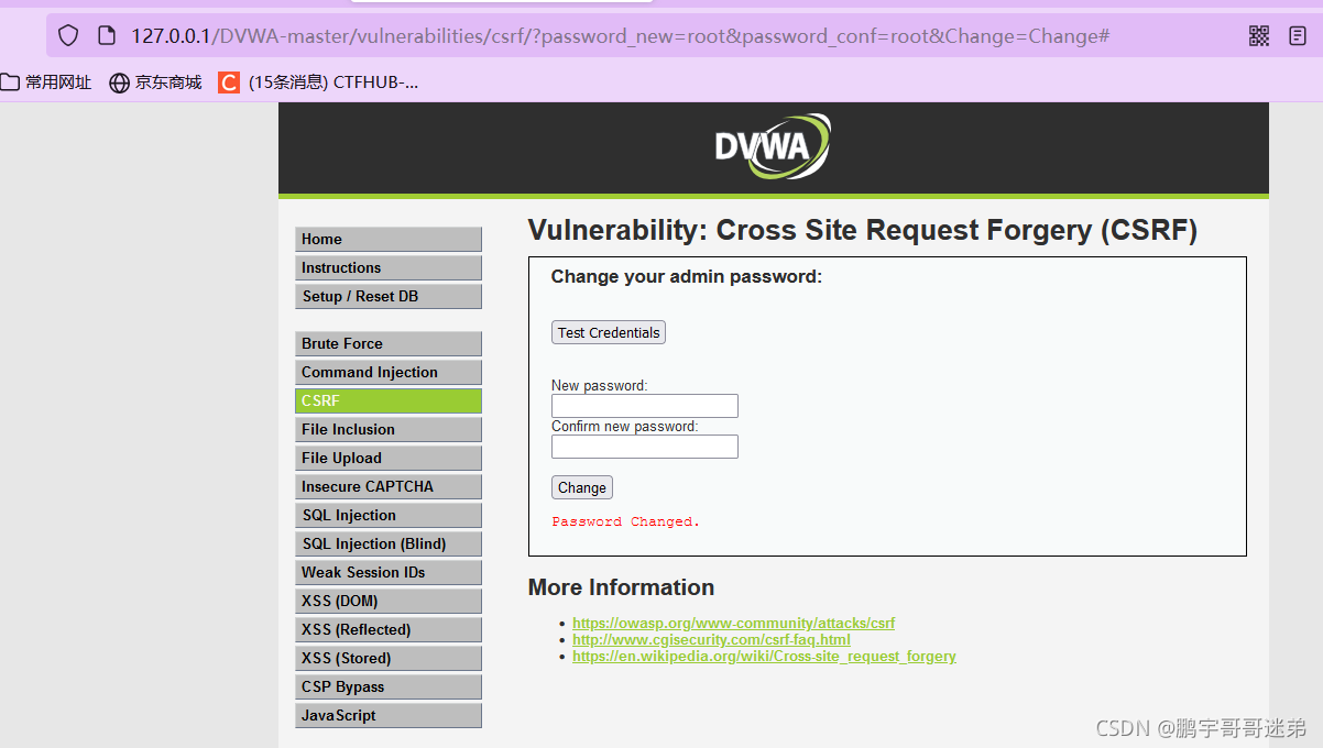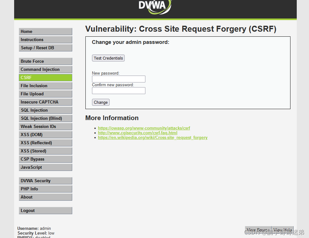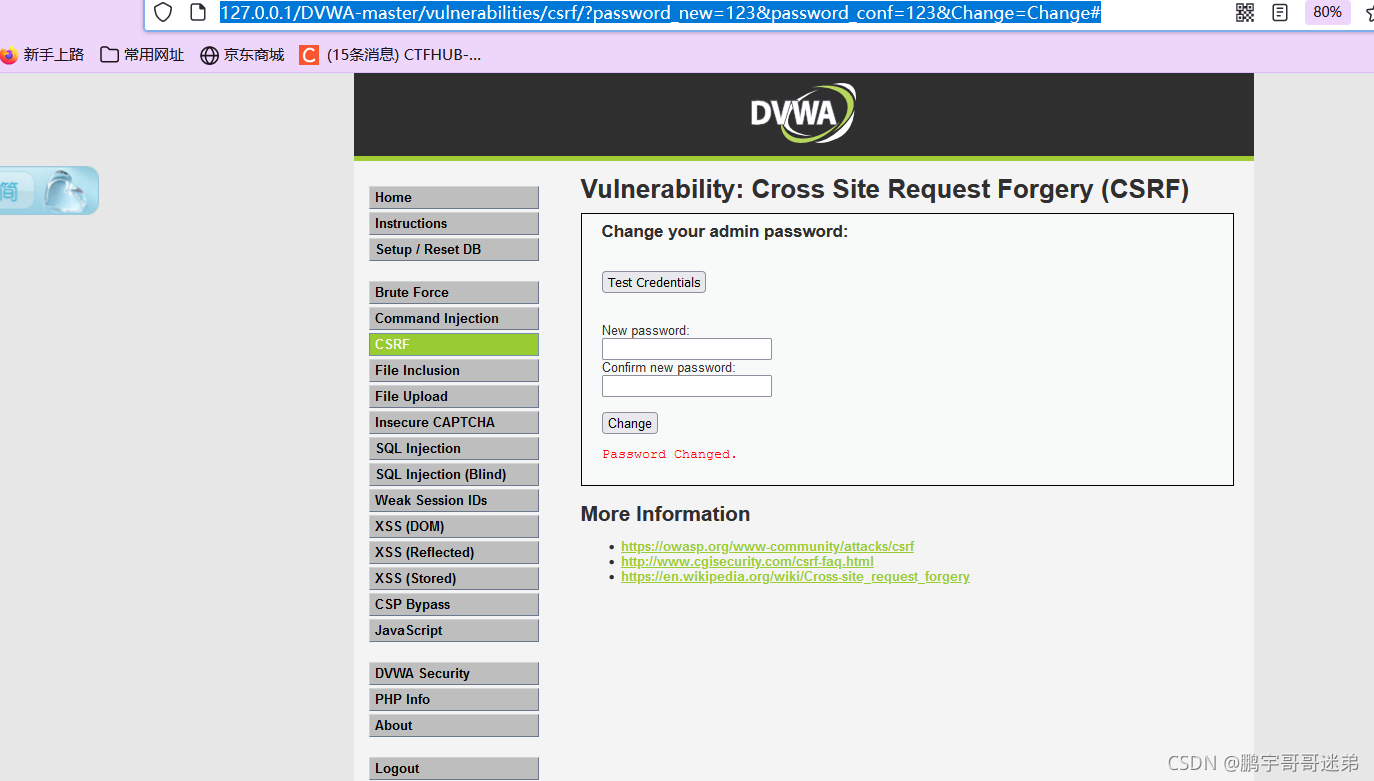 在DVWA-master\dvwa\includes目录下找到dvwaPage.inc.php文件中所有的”charset=utf-8”,修改”charset=gb2312”