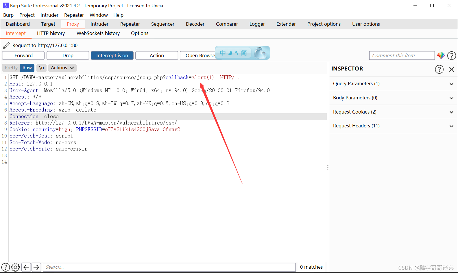 <p>The page makes a call to ' . DVWA_WEB_PAGE_TO_ROOT . '/vulnerabilities/csp/source/jsonp.php to load some code. Modify that page to run your own code.</p>
