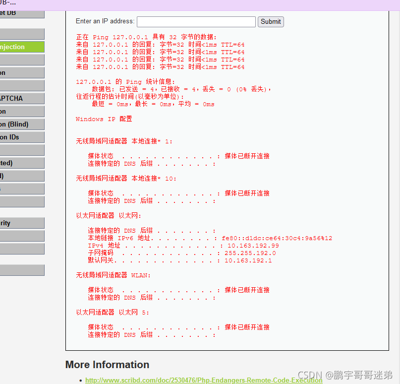 源码中发现直接可以对系统进行ping? 而且不过滤输入