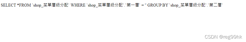 $GROUP_BY="GROUP BY `shop_菜單層級分配`.`第二層` ";