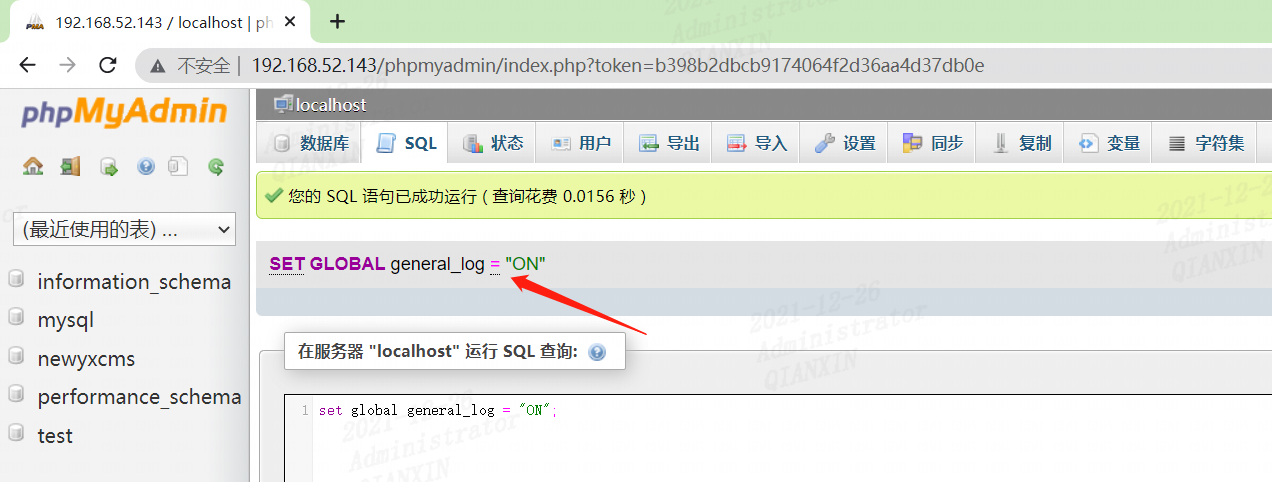 我们尝试在日志写 shell ,使用SQL语句开启日志服务